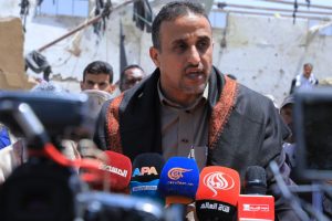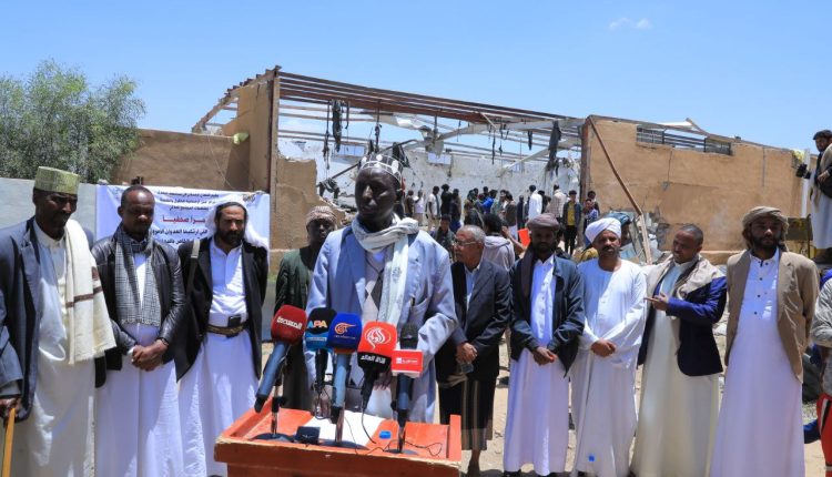 مؤتمر صحفي بمسرح الجريمة الأمريكية بمركز إيواء المهاجرين في صعدة