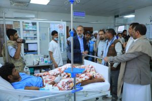 وعقب المؤتمر الصحفي زار المنسق المقيم للأمم المتحدة والوفد المرافق له وممثلو وزارتي الخارجية والداخلية والسلطة المحلية، جرحى هذه الجريمة في مستشفيي الجمهوري والطلح.