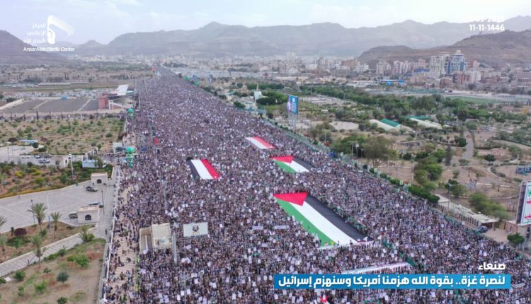 حشد مليوني بالعاصمة صنعاء حمداً وشكراً لله على الفشل الأمريكي وتحدياً للعدو الإسرائيلي
