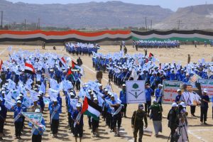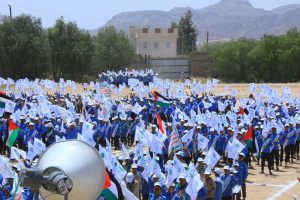 وجسد الطلاب وهم يحملون العلمين اليمني والفلسطيني والرايات المعبِّرة عن التضامن مع فلسطين وقضايا الأمة، القيم الروحية والجهادية.. مؤكدين أن اليمن بجيله الواعد ماضٍ في نصرة فلسطين ومقدسات الإسلام.