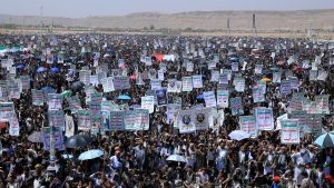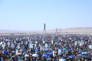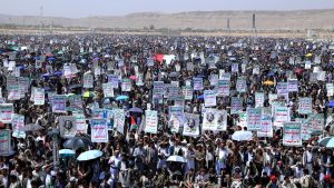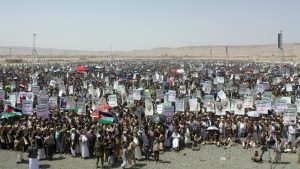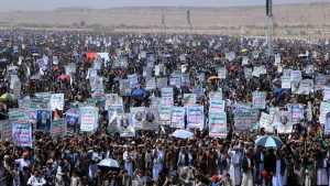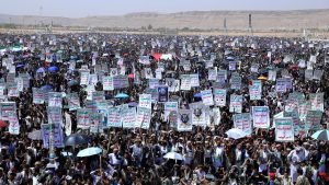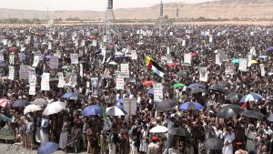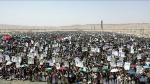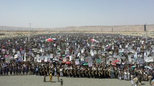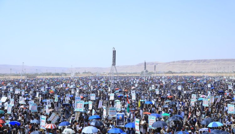 ونددت الحشود بتدنيس آلاف اليهود للمسجد الأقصى، وإساءتهم لخاتم الأنبياء والمرسلين محمد صلى الله عليه وآله وسلم.