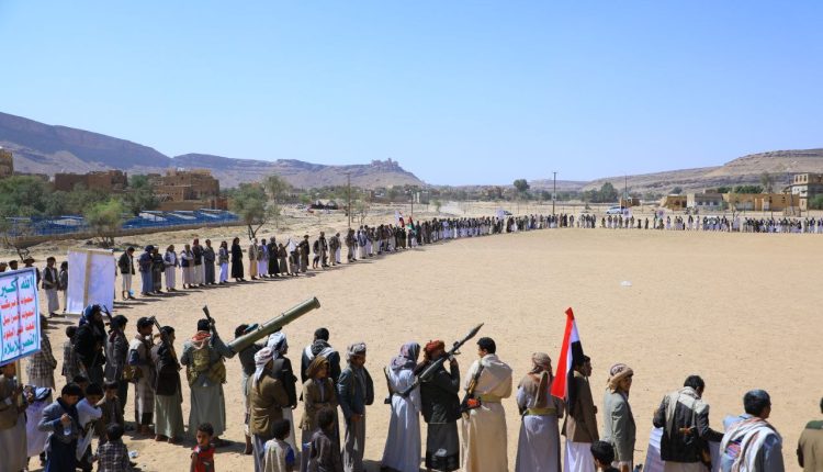 وقفة قبلية لقبائل العبدين وغراز بصعدة تنديداً بمجازر العدو في غزة