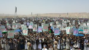 وأكد المشاركون في المسيرات التي احتضنتها 38 ساحة متفرقة توزعت على ساحة المولد النبوي بمركز المحافظة، وساحة الشهيد القائد في خولان عامر، وساحات ذويب بمديرية حيدان، وشعارة والحجلة وبني صياح وبني القم والشوارق بمديرية رازح، والخميس وآل مقنع ونيد البارق بمديرية منبه، والسهلين والبرقة والعقلين بمديرية آل سالم، وكتاف وأملح والعقيق بمديرية كتاف، والجرشة والرحمانين وبقامة بمديرية غمر، وبني سعد والرقة والقهرة ووالبه والعين بمديرية الظاهر، والجمعة وعرو بمديرية بني بحر، ومديرية شدا، ويسنم وقهر بني الحارث بمديرية باقم، وقطابر وآل ثابت وحنبه بمديرية قطابر، وربوع الحدود وبني عباد وولد عمر وبني سويد ومدينة جاوي بمديرية مجز، ومذاب بمديرية الصفراء، والجفرة والعضلة بمديرية الحشوة، اليوم الجمعة، تحت شعار “نصرة لغزة.. مسيراتنا مستمرة وعملياتنا متصاعدة”، استمرارهم في الخروج الأسبوعي لدعم واسناد غزة، انطلاقاً من المسؤولية الدينية والأخلاقية والإنسانية.