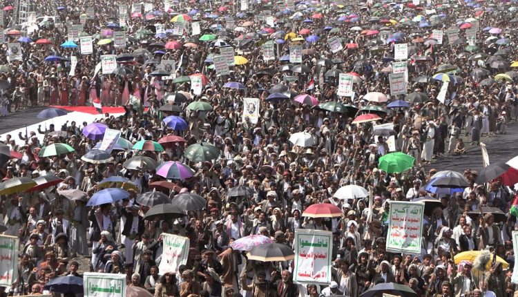 وباركت الحشود العمليات النوعية التي تنفذها القوات المسلحة اليمنية ضد الأهداف الحيوية للعدو الصهيوني في عمق الأراضي الفلسطينية المحتلة، وكذا العمليات البحرية القوية والفاعلة.