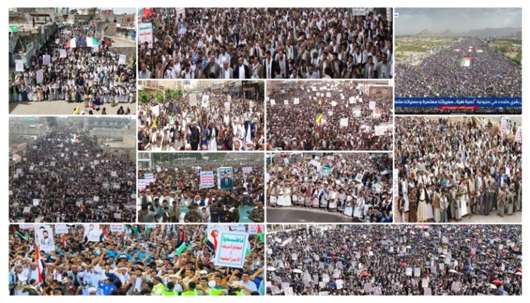 التصعيد الجماهيري يتخطى 1300 ساحةً.. اليمن يواصل الإسناد المتكامل بالمَسيرات والمُسَيّرات