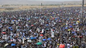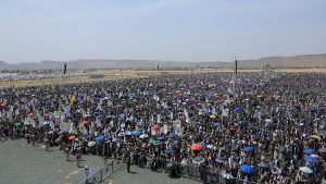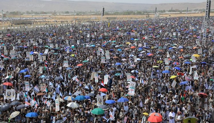 وكان السيد القائد عبدالملك بدرالدين الحوثي، قد دعا في خطابه أمس الخميس، أبناء الشعب اليمني إلى الخروج المليوني اليوم الجمعة، قائلاً: “أدعو شعبنا العزيز المجاهد، يمن الإيمان، يمن الحكمة، يمن الوفاء، يمن الرجولة، يمن الشهامة، أدعو الجميع إلى الخروج الواسع العظيم يوم غد الجمعة إن شاء الله تعالى، في العاصمة صنعاء، وفي بقية المحافظات، خروجاً عظيماً، يا من تكثرون حين الفزع، وتقلُّون عند الطمع، كما أثنى رسول الله “صَلَّى اللهُ عَلَيْهِ وَعَلَى آلِهِ” على أسلافكم الأنصار، المجاهدين الأبرار، بارك الله فيكم، وكتب أجركم”.