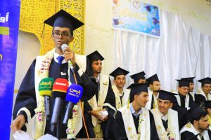 وفي الحفل، بارك محافظ صعدة محمد جابر عوض للخريجين، تخرجهم بعد مثابرة واجتهاد على مدار ثلاثة أعوام وصولا إلى حصد الثمار والنجاح والتخرج.