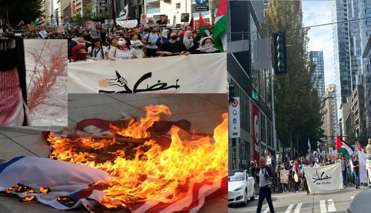 وفي التظاهرة التي جابت شوارع المدينة، الأحد الفائت، شاركت مجموعةُ “نضال سياتل” إلى جانب حلفاء آخرين من قوى وحركات التحرّر من الجاليات العربية والإسلامية، حَيثُ ردّد المشاركون الهُتافات المطالِبة بتحرير أرض فلسطين “من النهر إلى البحر”، وبطرد القواعد العسكرية الأمريكية والصهاينة من المنطقة.