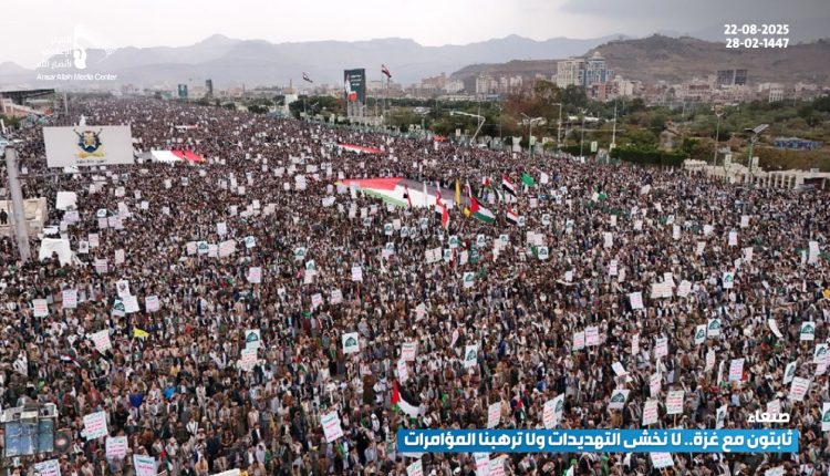 مسيرة مليونية بالعاصمة صنعاء تؤكد الثبات مع غزة مهما كانت التهديدات والمؤامرات