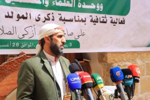 فيما استعرض عضو رابطة علماء اليمن العلامة أحمد محمد الهادي محطات من حياة الرسول الأعظم محمد صلى الله عليه وآله وسلم .. معتبراً الاحتفاء بالمولد النبوي، وفاءًا وعرفانًا بنعمة الله على عباده حين أرسل إليهم خير خلقه، هاديًا ومبشرًا ونذيرًا.