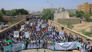 خرج آلاف من منتسبي جامعة صعدة، اليوم، في مسيرة جماهيرية حاشدة جابت عددًا من شوارع المدينة، تحت شعار “رسول الله قدوتنا.. وفلسطين قضيتنا”، تأكيدًا على مركزية القضية الفلسطينية لدى الشعب اليمني ورفضًا للعدوان الصهيوني المستمر على قطاع غزة.