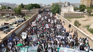 وفي بيان صدر عن المسيرة، جدد المشاركون إدانتهم “المطلقة والمتجددة” للعدوان الصهيوأمريكي الوحشي على غزة، مطالبين المجتمع الدولي وشعوب العالم بكسر حاجز الصمت إزاء جرائم الإبادة الجماعية، ورفض كافة أشكال التطبيع مع الكيان الصهيوني الغاصب.