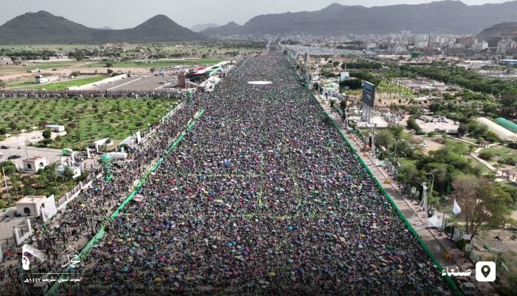 وتحوّل ميدان السبعين، إلى لوحة إيمانية مهيبة، يتوسطها اسم النبي محمد صلوات الله عليه وآله وسلم، في دلالة واضحة على ما يحتله من مكانة عظيمة في نفوس ووجدان أحفاد الأنصار الذي قال عنهم الرسول الأعظم ” الإيمان يمان، والحكمة يمانية”.