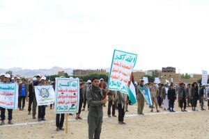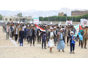 فيما أكدت كلمة الخريجين خلال العرض الشعبي على الاستمرار في نصرة غزة، والاستمرار في دورات طوفان الأقصى، وجددت التفويض للسيد القائد عبدالملك بدرالدين الحوثي في اتخاذ القرارات و خوض البحار دون تخلف أو كلل ، نصرة للشعب الفلسطيني.