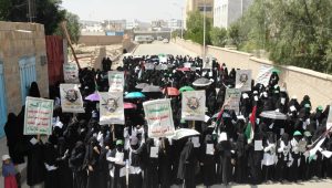 ورفع المشاركون في المسيرة التي تقدمها نائب رئيس الجامعة لشؤون الأكاديمية الدكتور حسن معوض، وأمين عام الجامعة علوي كباس، وعمداء وأمناء الكليات، الهتافات والشعارات المنددة بالمجازر الصهيونية، والبراءة من أعداء الله.