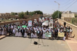 نظمت جامعة صعدة وملتقى الطالب الجامعي اليوم، مسيرة حاشدة للتنديد بالجرائم التي يرتكبها العدو الإسرائيلي بحق الشعب الفلسطيني، تحت شعار “ثباتًا مع غزة، وتأييدًا للقوات المسلحة اليمنية”.