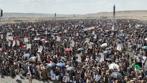 شهدت محافظة صعدة اليوم الجمعة، 40 مسيرة جماهيرية حاشدة، توافد إليها الآلاف منذ الصباح الباكر، للتأكيد على موقفهم الثابت تجاه القضية الفلسطينية ودعمهم لغزة، حيث حملت تلك المسيرات شعار “مع غزة .. لن نقبل بعار الخذلان مهما كانت جرائم العدوان”.
