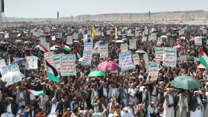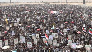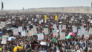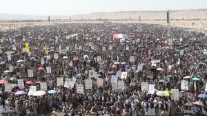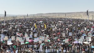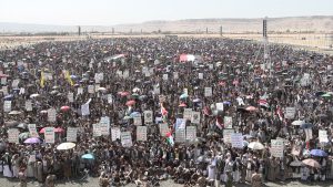 وفيما رفع المشاركون الأعلام اليمنية والفلسطينية، رددوا شعارات وهتافات تعبّر عن التضامن مع الشعب الفلسطيني في غزة، وتجديد العهد مع قضايا الأمة، وتؤكد على التمسّك بالقيم الوطنية والدينية والانسانية، وعلى استمرار الدعم الشعبي للقضية الفلسطينية، إلى جانب القيادة الثورية والسياسية والعسكرية.