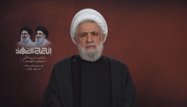 وأضاف الشيخ قاسم: “لن نسمح بنزع السلاح وسنواجه مواجهة كربلائية لأننا في معركة وجودية وبامكاننا تحقيق هذه المواجهة ان شاء الله”، مشددًا على أنَّ “المشكلة “إسرائيل” فهي لن تسمح باستقرار لبنان ونحن نرفض أي مشروع يصب في خدمة “إسرائيل” ولو ألقي عليه اللبوس الوطني”.