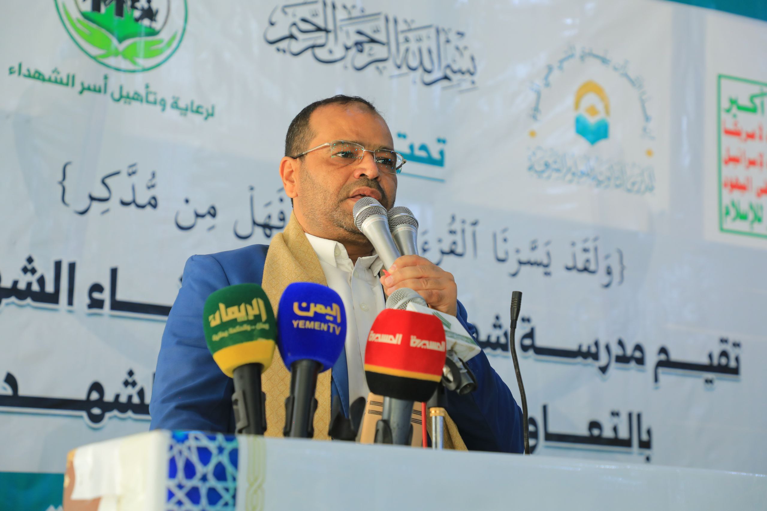ودعا الجميع إلى الاهتمام بأبناء الشهداء والأنشطة الدينية والثقافية، وفي مقدمتها القرآن الكريم، داعيًا أبناء الشهداء إلى تجسيد القيم المحمدية في شتى مناحي الحياة وأن يكونوا الأنموذج الراقي في المجتمع.