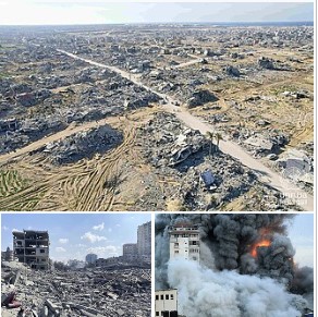 ووفقًا لتقارير المكتب الإعلامي الحكومي في غزة والجهات الأممية، فقد تم تدمير 88% من مباني القطاع، حيث تُقدَّر الخسائر الاقتصادية المباشرة بأكثر من 62 مليار دولار، كما دُمِّرت 163 مؤسسة تعليمية كليًا، و369 جزئيًا، و833 مسجدًا كليًا، و167 مسجدًا جزئيًا، إضافة إلى تدمير 19 مقبرة.