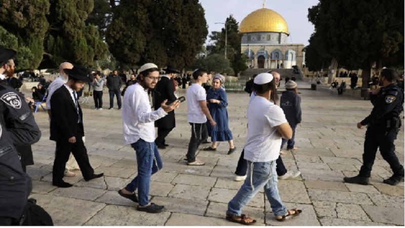 واصل المستوطنون الصهاينة المتطرفون بدعم الاحتلال الصهيوني استهداف المسجد الأقصى المبارك، في استفزاز متواصل للمصلين وللشعب الفلسطيني.