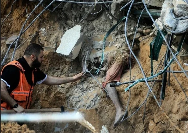 انتشال جثامين 20 شهيدًا فلسطينياً من عيادة الشيخ رضوان في مدينة غزة
