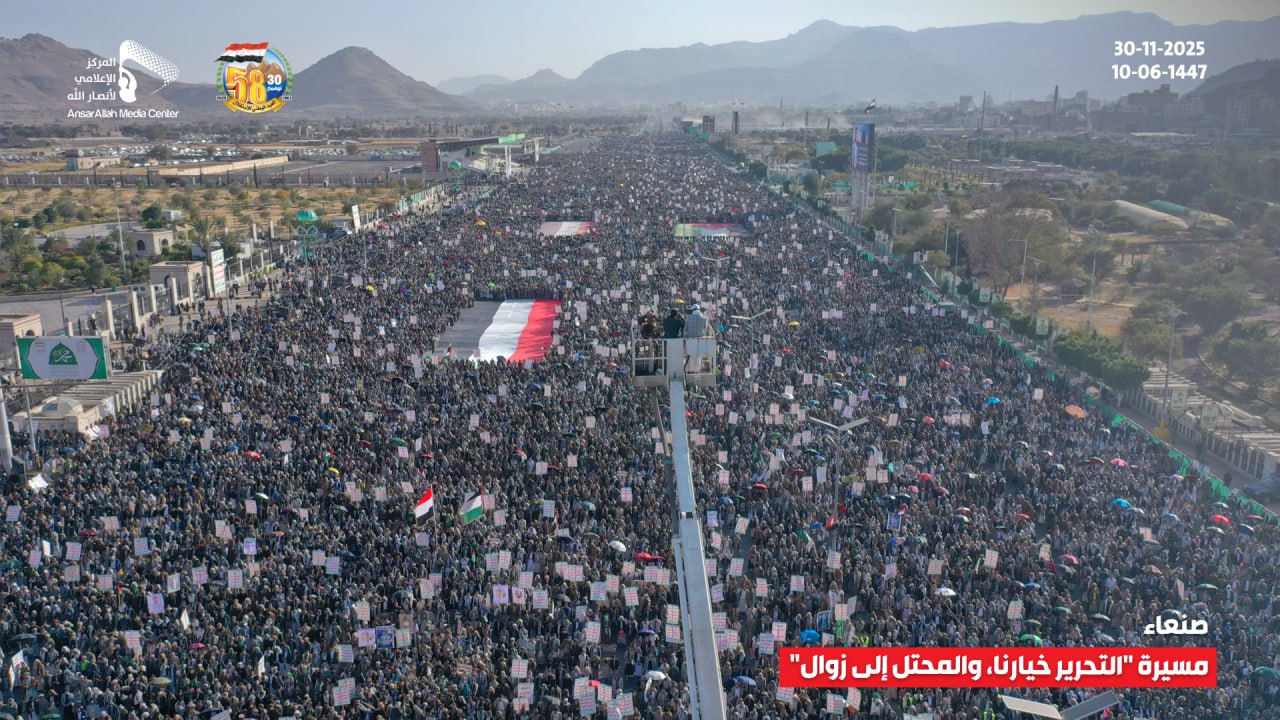 وجسد الخروج المليوني المهيب بذكرى عيد جلاء آخر جندي بريطاني من أرض اليمن، رسالة للعالم أجمع تؤكد ثبات وصمود الشعب اليمني في مواجهة قوى الاستكبار والهيمنة ومناصرة قضايا الأمة وفي مقدمتها القضية الفلسطينية.
