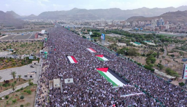 دعت لجنة نصرة الأقصى إلى الاحتشاد المليوني عصر يوم غد الجمعة ، في ميدان السبعين بالعاصمة صنعاء، وفي بقية الساحات بالمحافظات في مسيرات ” تلبيةً ونصرةً للشعب الفلسطيني.. ثابتون وجاهزون للجولة القادمة”، استجابةً لله تعالى، وجهاداً في سبيله، وتلبيةً لدعوة السيد القائد