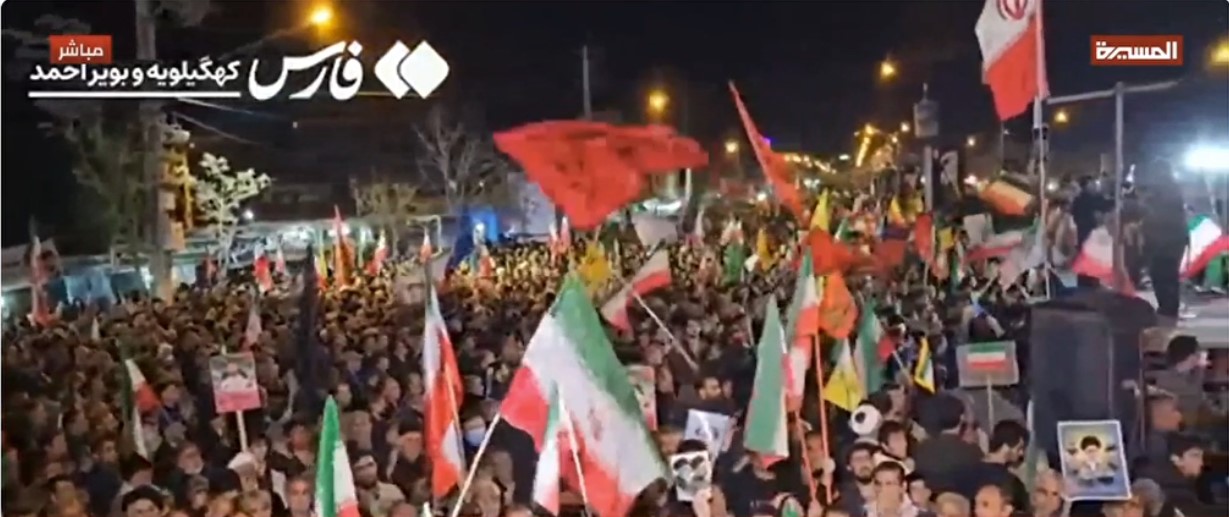 ففي مدينة بوشهر جنوب إيران أقام المشاركون مراسم عزاء ومجالس حسينية، ولوحات الحزن، كما هو الحال في العاصمة طهران، وميدان آية الله سعيدي، التي شهدت مراسم إحياء الليلة الأربعين مرددين الهتافات الدينية والثورية، وشعارات الله أكبر الموت لأمريكا.