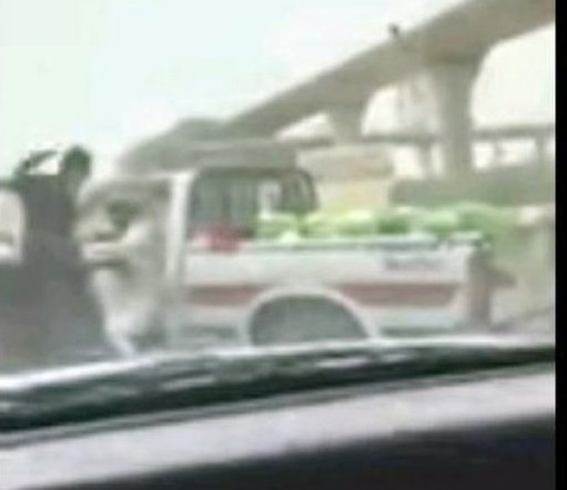 كما يظهر الفيديو الرجل الآخر الذي كان يقود إحدى الشاحنات المحملة، وهو أحد تجار الخضراوات، وهو يجري صارخاً في نهاية الفيديو.