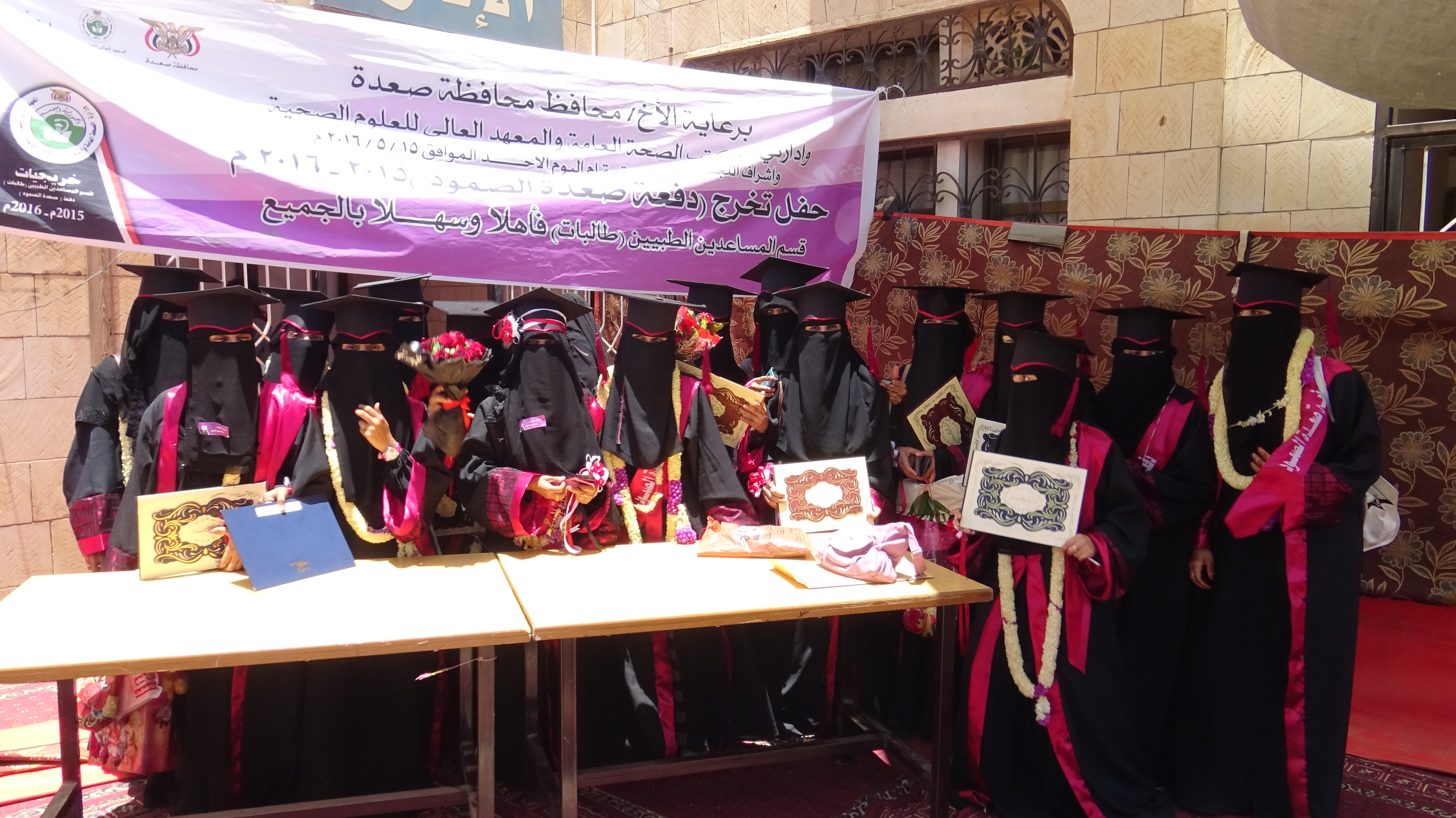 صعدة| 15/مايو خاص صعدة نيوز: أقيم اليوم الأحد حفل تخرج لدفعة من الطالبات تحت أسم (دفعة صعدة الصمود)مساعدات أطباء برعاية محافظ صعدة محمد جابرعوض ومكتب الصحة والمعهد العالي للعلوم الصحية ، وقد تخلل الحفل العديد من البرامج والفقرات التي أكدت على أهمية مثل هذه التخصصات وفي الجانب الطبي وخصوصاً في مثل الظروف التي يمر بها شعبنا من عدوان غاشم يستدعي وجود كوادر صحية مؤهلة.