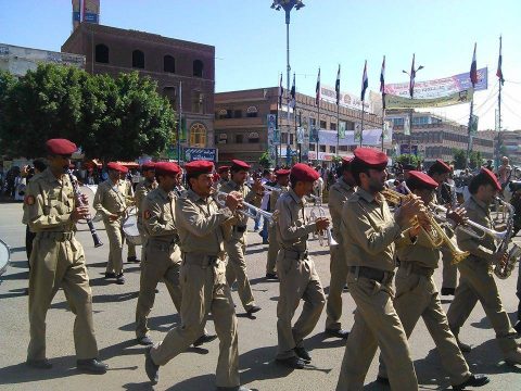 الفرقة الموسيقية العسكرية تجوب شوارع العاصمة احتفاءً باليوم الوطني للجمهورية اليمنية