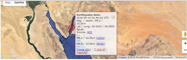 وكان زلزال خفيف هز العاصمة اليمنية يوم الإثنين في الـ 16 من مايو شعر به بعض سكان العاصمة والتي كانت ارتدادية أتت بعد الهزة الأساسية التي ضربت خليج العقبه قبل ساعات بحسب خبير في الأرصاد اليمنية .