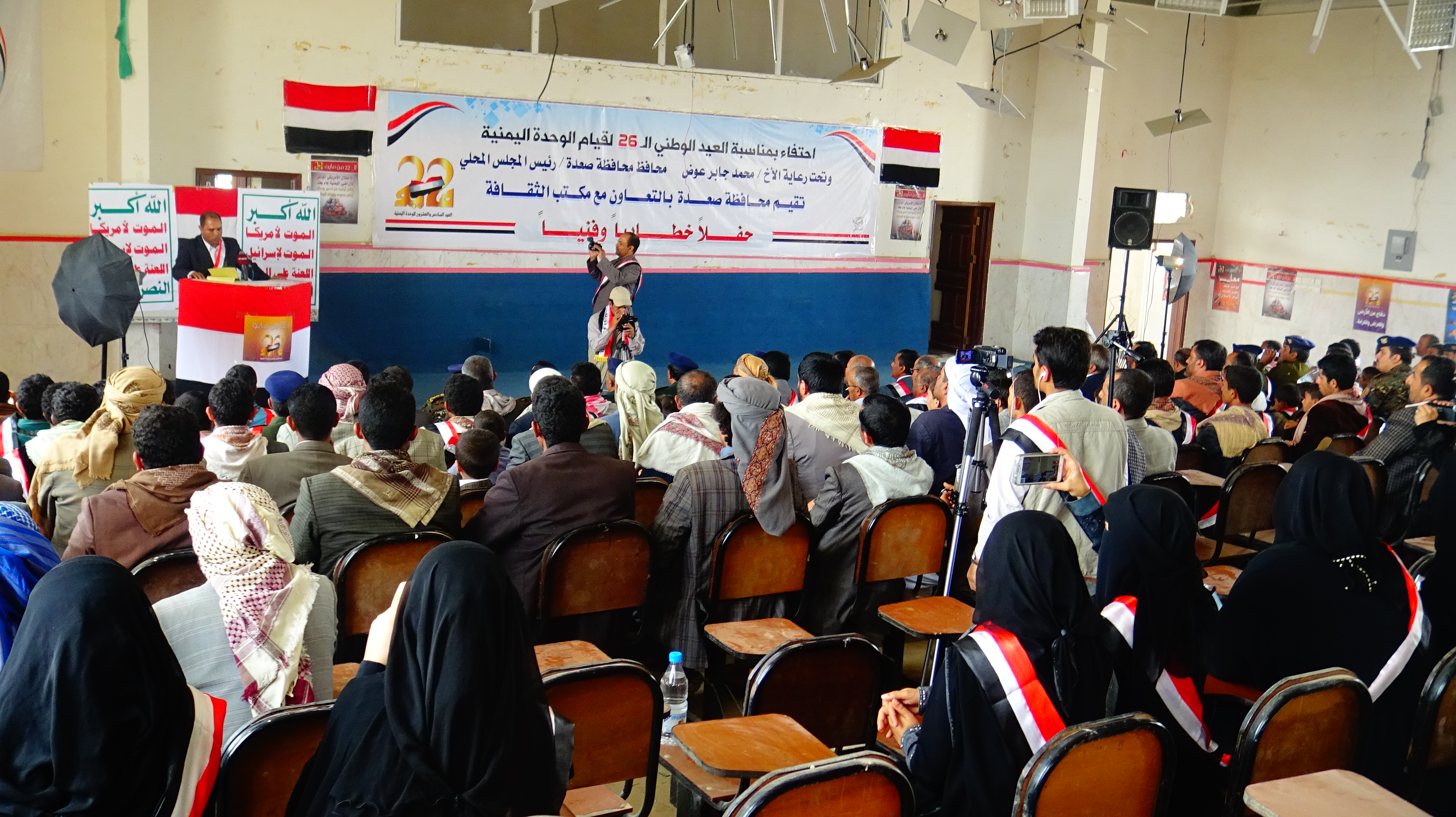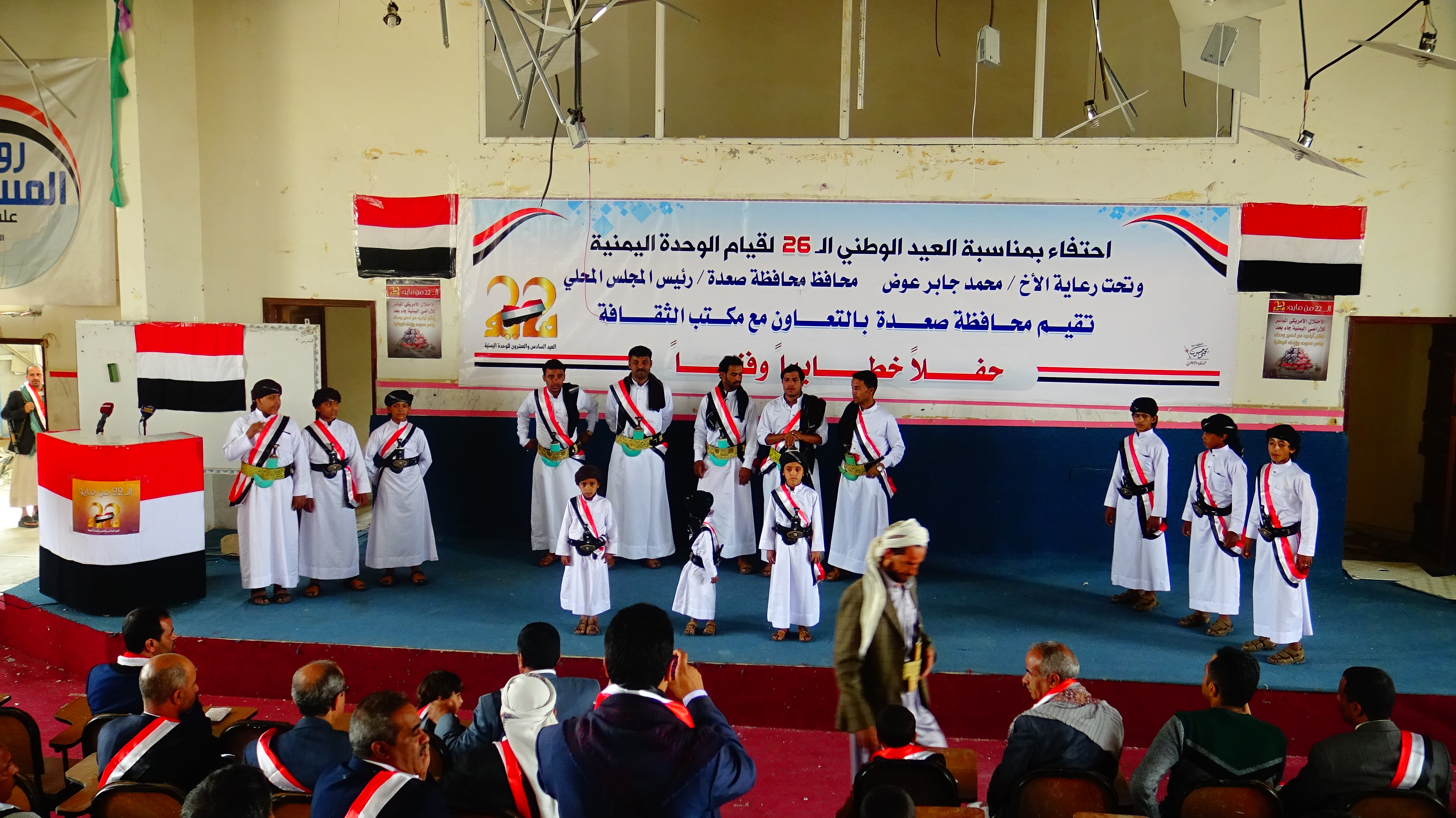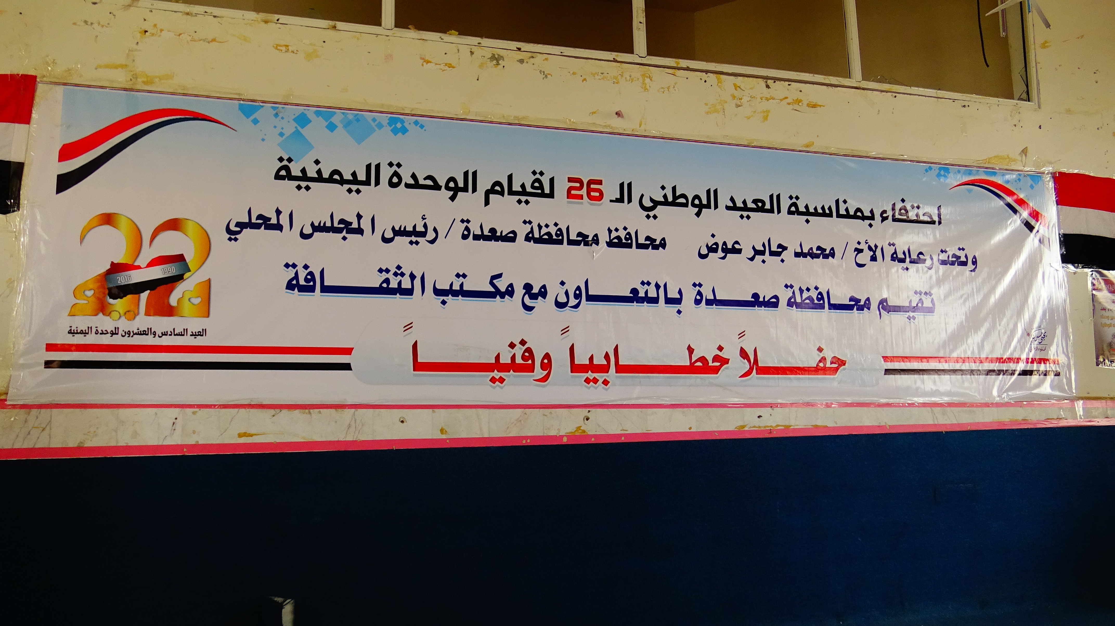 صعدة |26 مايو | صعده_نيوز: خـــاص أقيم اليوم الخميس احتفالاً ثقافياً بقاعة 22 مايو بمناسبة الذكرى ال26 للوحدة اليمنية المباركة برعاية الأخ /محمد جابر عوض محافظ محافظة صعدة وبالتعاون مع مكتب الثقافة .