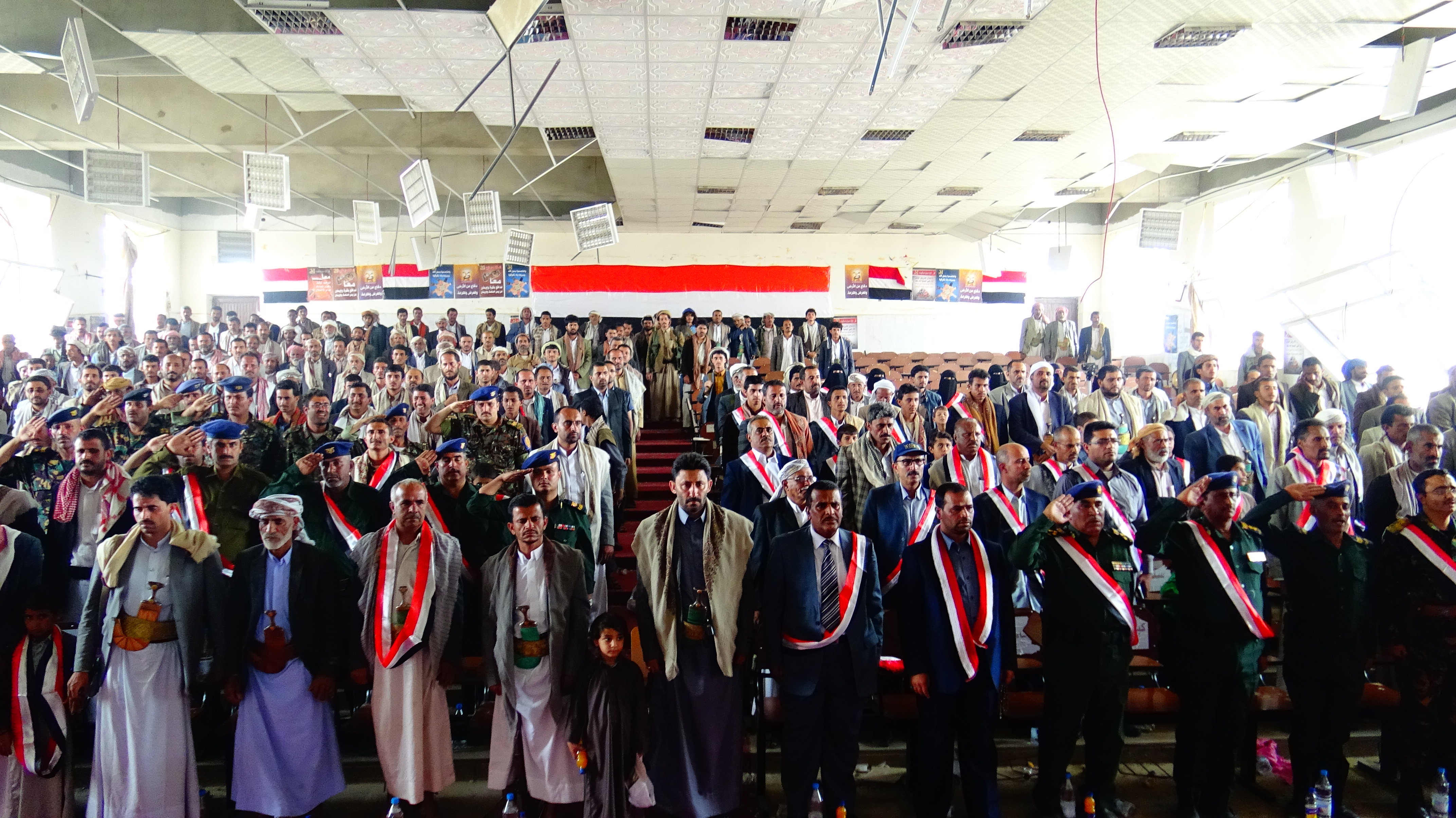 الحفل بدأ بآيات من الذكر الحكيم الذي يدعو للوحدة والاعتصام بحبل الله جميعاً , ثم السلام الجمهوري .