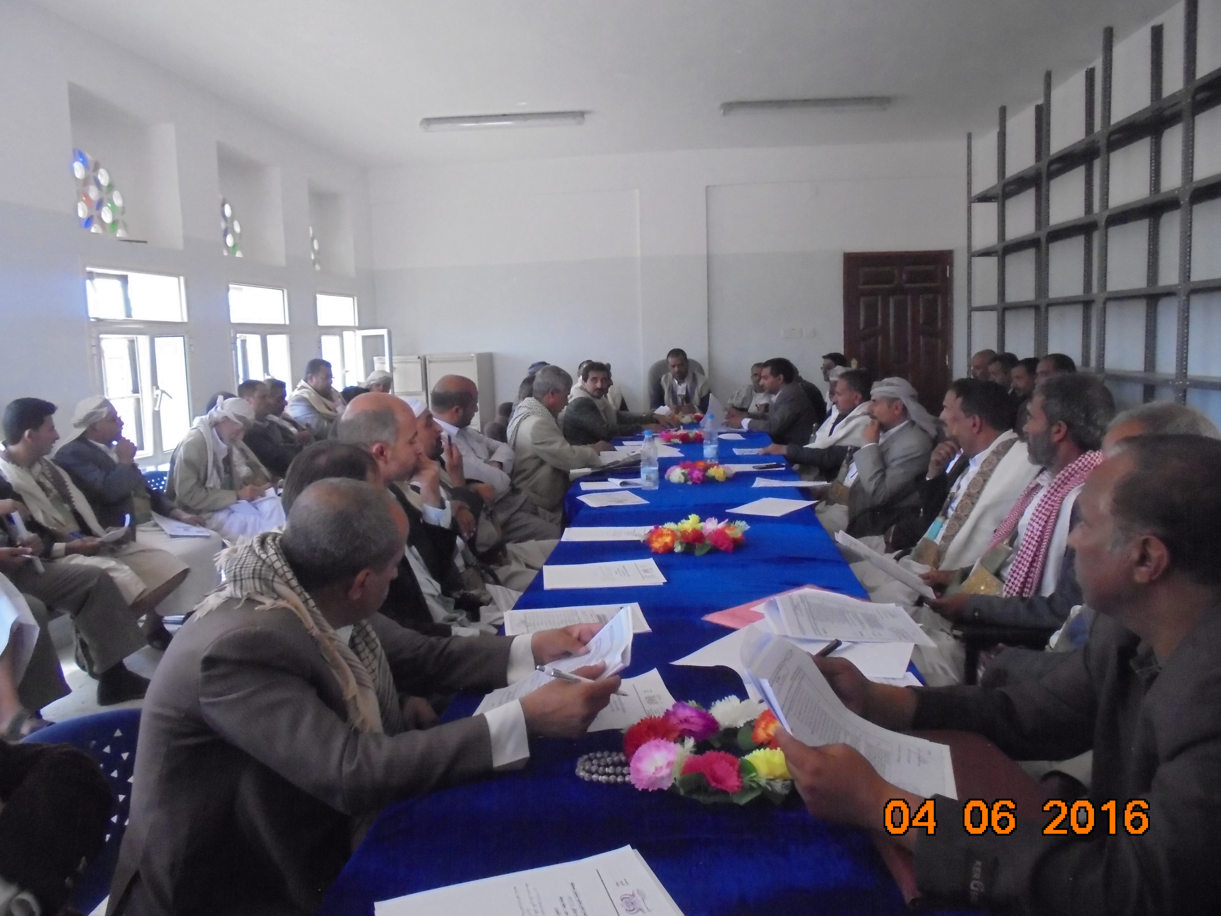 وقُراء في الأجتماع محضر الجلسة السابقة والقرارت المتخذة لمواجهة الصعوبات والعوائق التي سببها العدوان السعودي الأمريكي