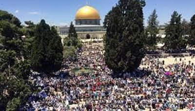 أدى عشرات الآف من الفلسطينيين صلاة أول جمعة من شهر رمضان المبارك في المسجد الاقصى رغم القيود الأمنية المشددة التي فرضتها سلطات الاحتلال الاسرائيلي .
