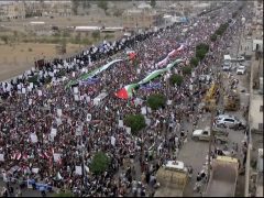 صنعاء | 01 يوليو | صعدة نيوز : شهد شارع الستين الشمالي بالعاصمة صنعاء عصر اليوم الجمعة مسيرة جماهيرية حاشدة شارك فيها عشرات آلاف المواطنين إحياءً ليوم القدس العالمي.