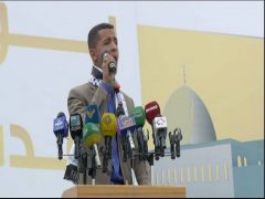 وألقى رئيس المجلس السياسي لأنصار الله صالح الصمّاد كلمة أكد فيها أن قضية فلسطين هي القضية التي نقيس عليها تقدم العرب وتخلفهم.