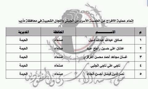 مأرب:تبادل خمسة اسرى من الجيش واللجان مقابل خمسة اسرى من مرتزقة العدوان