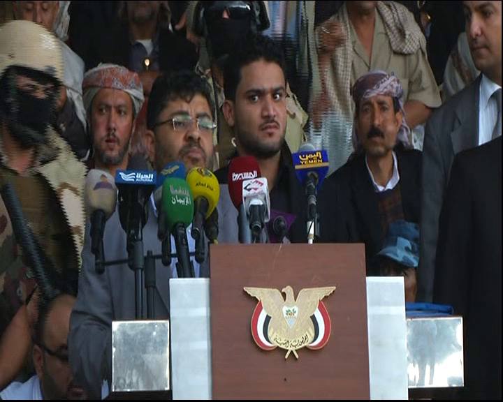 وقال ” سنعلنها مدوية أن هذا النهج الثوري سيحافظ عليه أبناء الشعب اليمني وسيكون داعم أساسي للإتفاق السياسي ومقاوم لأي إختلال أو أي إعوجاج قد يحصل في المستقبل لأننا نحمل حريتنا ونحمل قرارنا الذي هو نابع من وطننا وشعبنا قرار وطني لا يخضع لأي إبتزاز أو مؤامرة “.