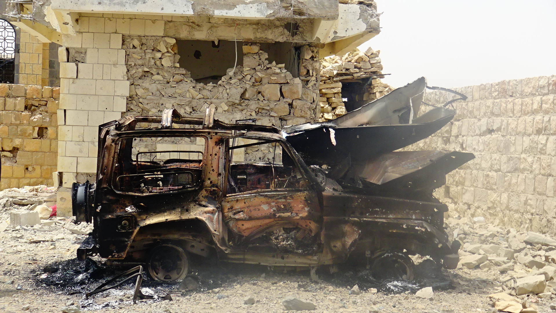 الغارات استهدفت مركز المديرية والمبنى التربوي و مسجد الصحابة المجاور للمركز وسيارتين الاولى تابعة لشرطة النجدة والأخرى كانت محجوزة بعد القبض عليها محملة بالحشيش كانت في طريقها الى السعودية.
