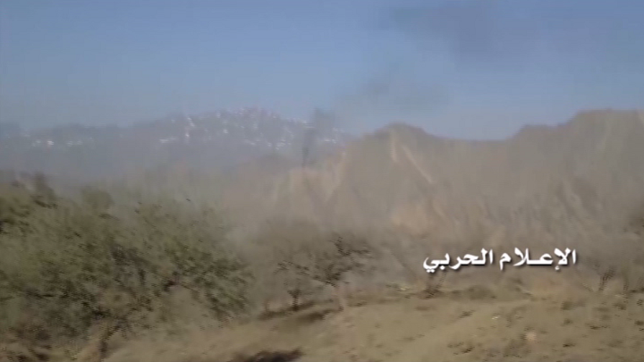 وبث الاعلام الحربي مشهداً لعملية إطلاق الصاروخ الموجه على إحدى الجرافات التي كانت تحاول شق طريق مستحدث للجيش السعودي في جبل العزة بجيزان حيث اصابها الصاروخ ما أدى إلى إحراقها وتصاعد أعمدة الدخان من عليها.