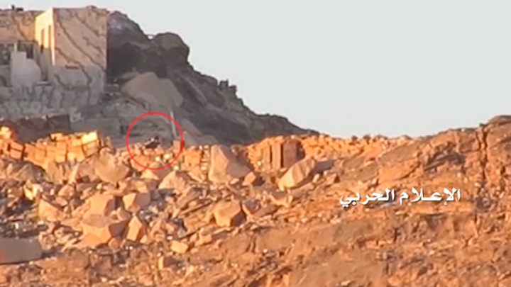 ويظهر المشهد قرب الجيش اليمني واللجان الشعبية من موقع الضبعة، كما يظهر المشهد تحرك أحد الجنود السعوديين أعقبه عملية استهداف مباشر بالمدفعية على الموقع.