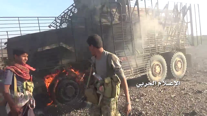 وبعد ذلك بلحظات تم استهداف مدرعة أخرى بصاروخ موجه، أدى إلى إصابتها بشكل مباشر، قبل أن يفر عناصر المرتزقة، تاركين المدرعات وجثث القتلى. ويتقدم أبطال الجيش واللجان الشعبية نحو مواقع المرتزقة، وبعد اشتباكات عنيفة يتم طردهم من عدد من المواقع، واغتنام أسلحة رشاشة.