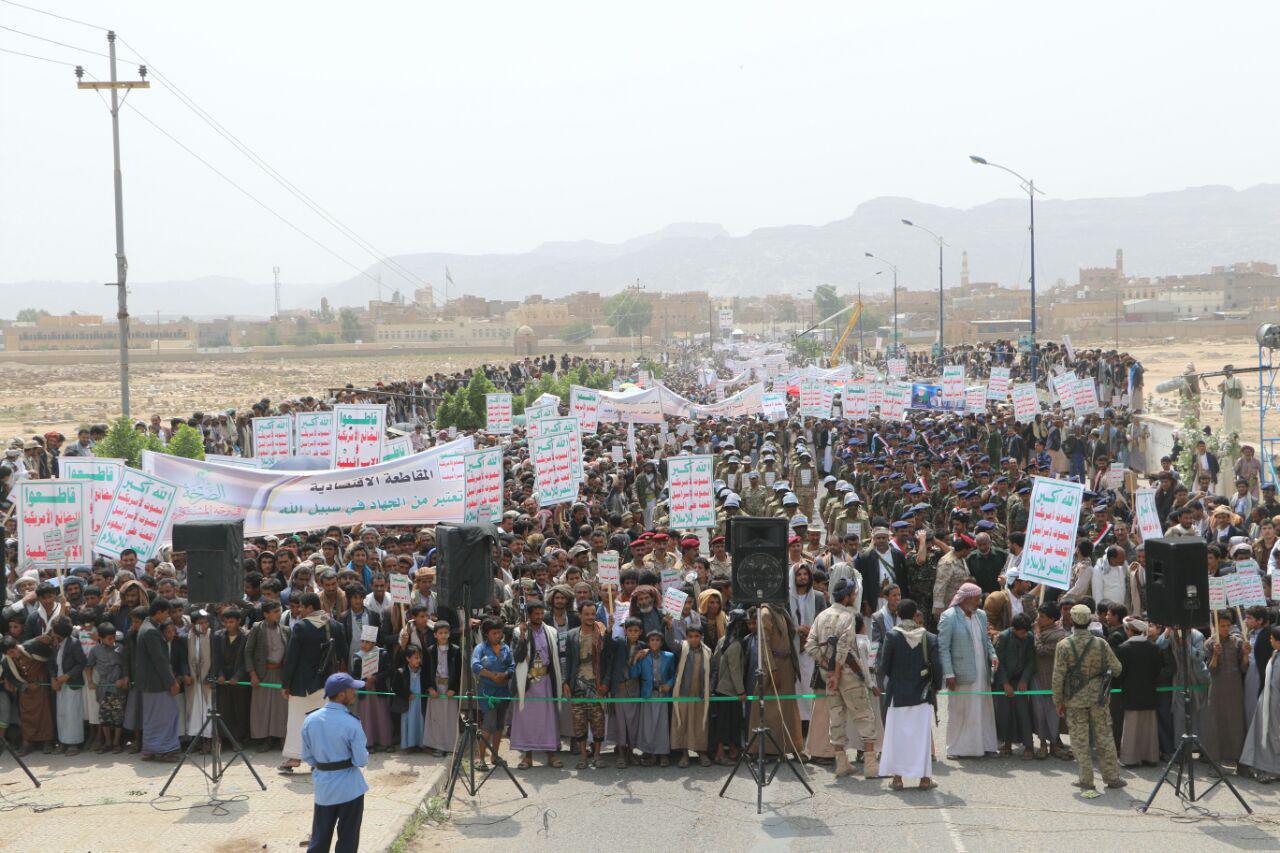بالصور | تظاهرة حاشدة بمحافظة صعدة تحت شعار ” صرخة نحو الأقصى ”