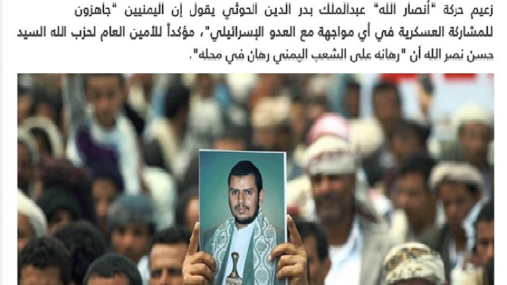 موقع قناة الجديد اللبنانية هو الاخر كتب تحت عنوان الحوثي: حاضرون لمساندة حزب الله في اي مواجهة عسكرية.