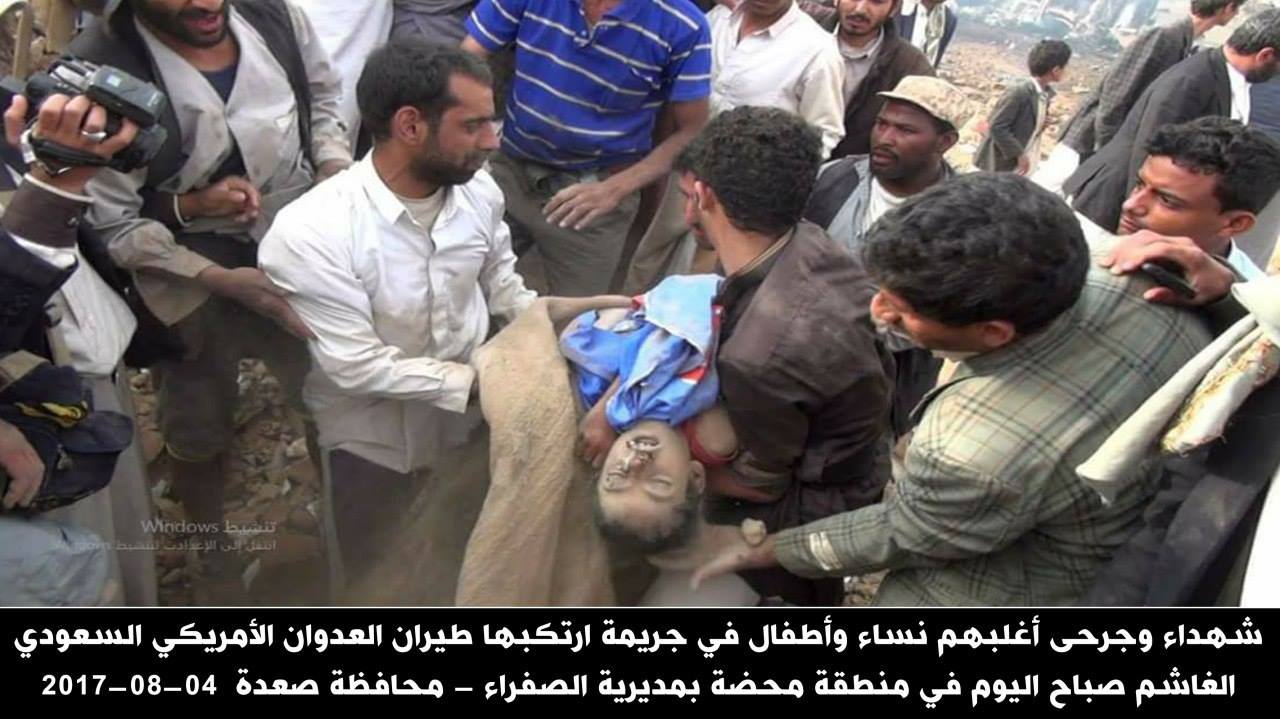 حيث استشهد 9مواطنين وأصيب ثلاثة من النساء والأطفال في غارة لطيران العدوان استهدفت منزلاً في منطقة محضة بمديرية الصفراء في صعدة.
