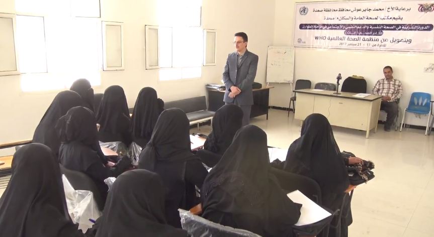 بدأت بمحافظة صعدة ، اليوم الأثنين ، دورة تدريبية في الصحة النفسية والدعم النفسي والاجتماعي في مرحلة الطوارئ للعاملات الصحيات من كافة مديريات المحافظة ينظمها مكتب الصحة والسكان وبتمويل من منظمة الصحة العالمية .